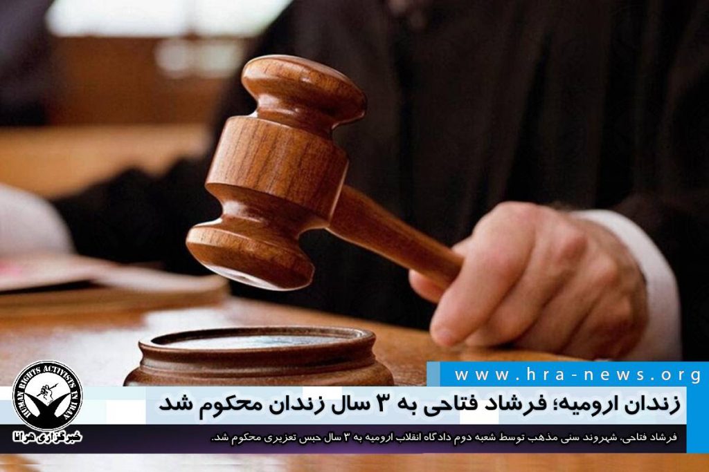 به گزارش خبرگزاری هرانا، ارگان خبری مجموعه فعالان حقوق بشر در ایران، فرشاد فتاحی، شهروند سنی مذهب توسط دادگاه انقلاب ارومیه به حبس محکوم شد.