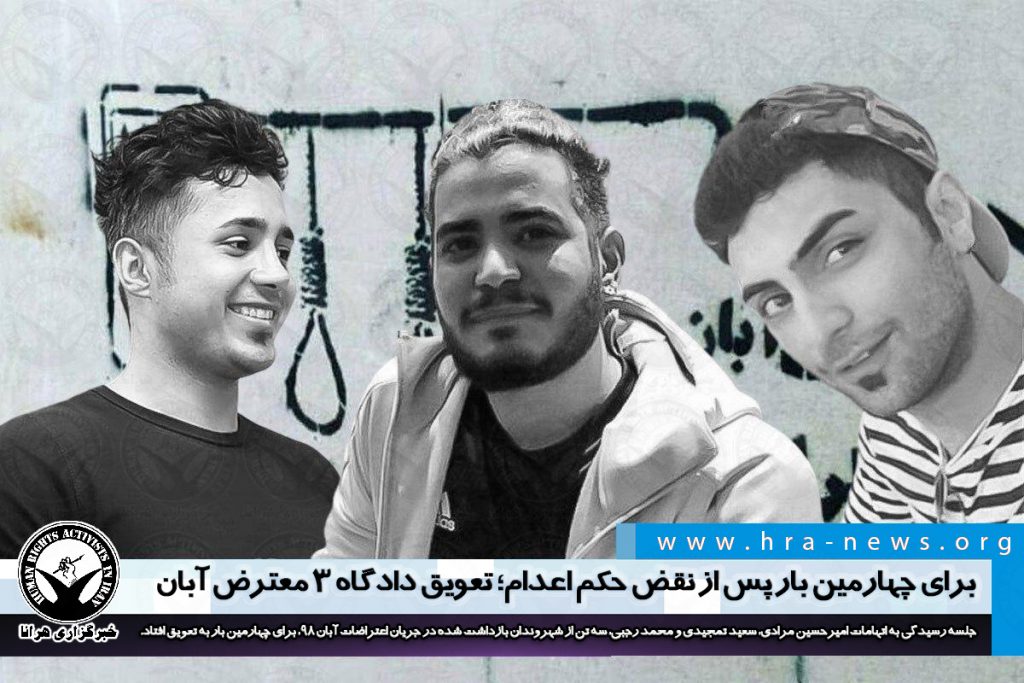 امیرحسین مرادی، سعید تمجیدی و محمد رجبی، سه تن از شهروندان بازداشت شده در جریان اعتراضات سراسری ۹۸ موسوم به “اعتراضات آبان” پیشتر توسط دادگاه انقلاب تهران به اعدام محکوم شدند. این افراد علاوه بر این مجموعا به ۳۸ سال زندان و ۲۲۲ ضربه شلاق نیز محکوم شدند.
